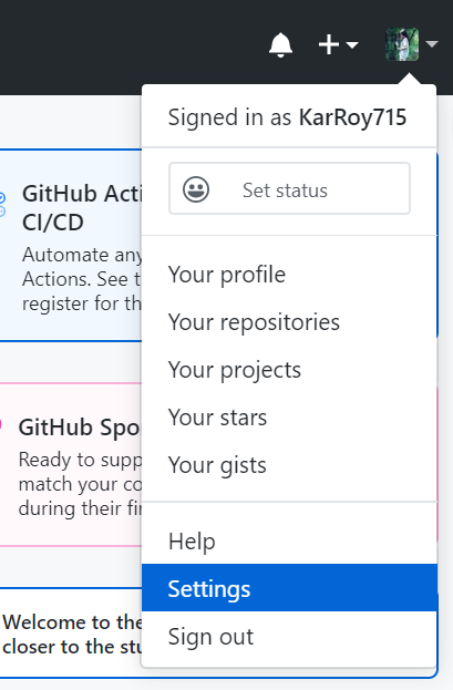 登录Github,首先点击settings